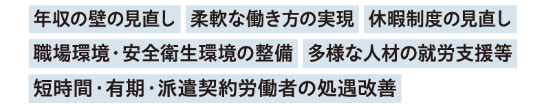 キーワード(カスタマーハラスメント、年収の壁など)でUAゼンセンの活動や取組・政策を検索できます。